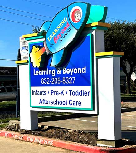 As a leading Houston Commercial Sign Company since 1985, Apple Signs specializes in providing our clients with the most attractive options for LED Message Centers, Indoor and Outdoor Signage, Monument Signs, Digital Banners, Lighted Signs and Awnings. Our family-owned and operated business offers a full line of graphic design services to ensure that your signs and promotional materials present the best possible image for your company.